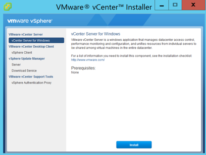 Launch the installer for VMware vCenter and click Install