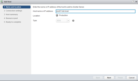 Enter the FQDN or IP of the vCenter server. I added a host record in DNS for vCenter.lab.local so that I can enter the name instead of the IP address. Click Next.