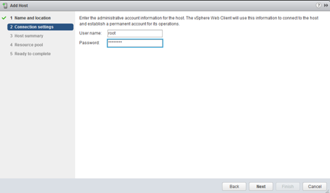 Enter in the root username and password for the ESXi host