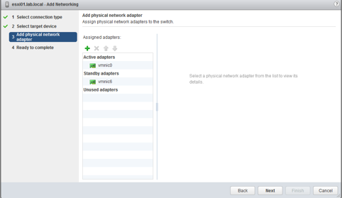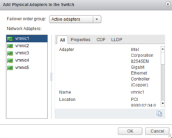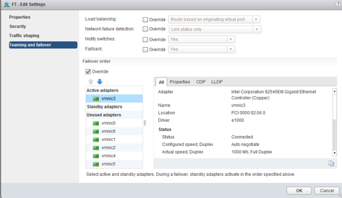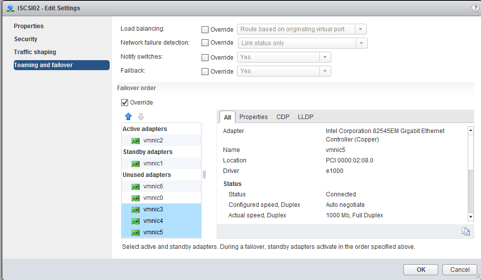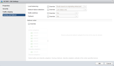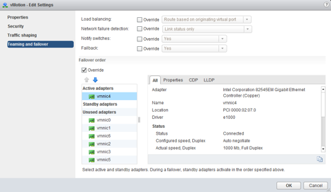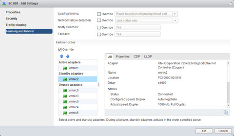 Repeat the same steps again but instead, the NIC that you make active and standby, swap them around. Make vmnic2 active and vmnic1 standby.