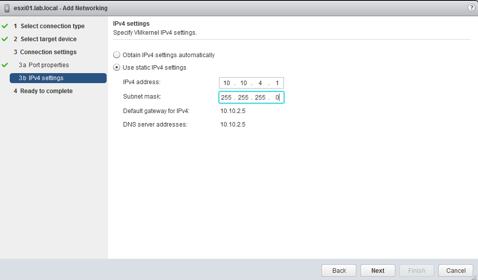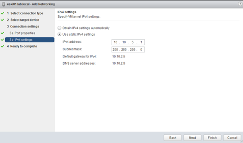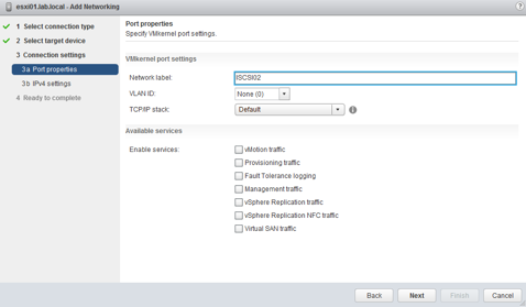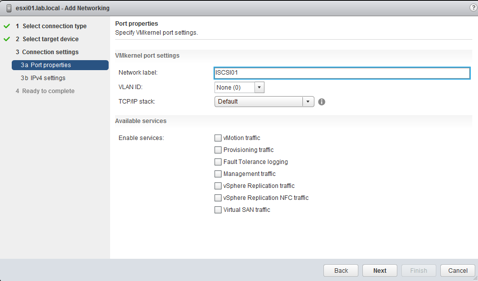 Click Next and Finish. Now go and edit the setting of the ISCSI01 port group