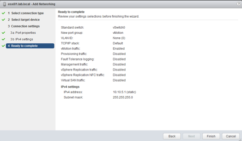 Repeat the same steps for the vMotion network, except the enabled service will be vMotion traffic.