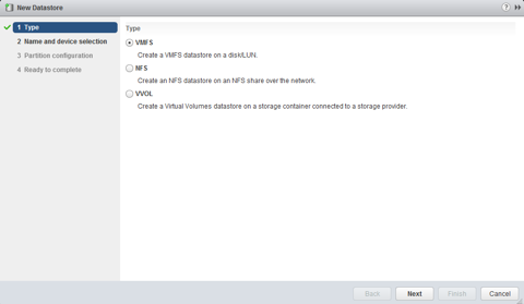 Leave VMFS selected and click Next