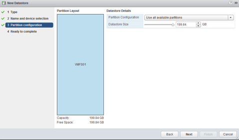 Repeat the same process to add the second 200GB datastore to our host.