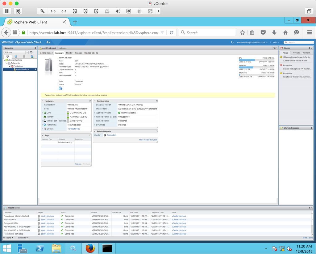 All done!! Now we should have a fully functioning vSphere 6 environment to do some testing in. Keep in mind that we are running all of this on limited hardware so we won’t have top performance but if you’re just needing a lab to practice in or study for your exam…this will do the trick! 😉