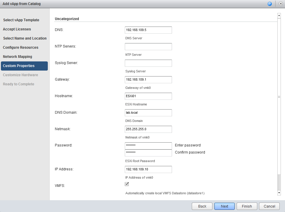 Now we will set our Custom Properties, like IP Address, DNS, Hostname, etc.