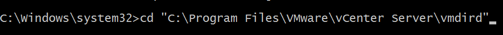 First, open an elevated command prompt from the vCenter server and browse to the “C:\Program Files\VMware\vCenter Server\vmdird” directory
