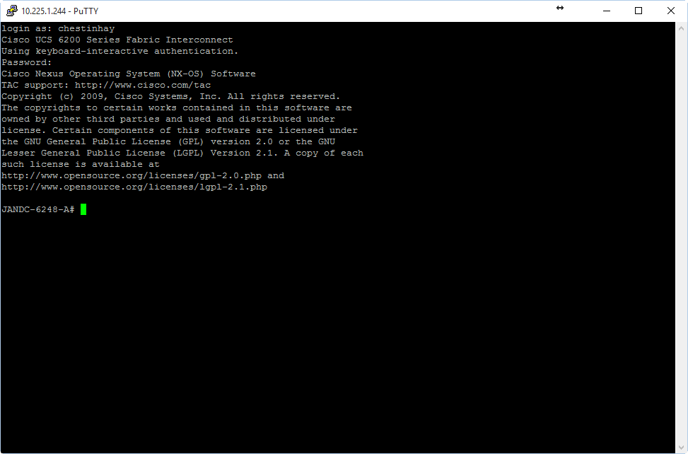 First, SSH into the UCSM cluster IP and log in with a user that has admin rights.