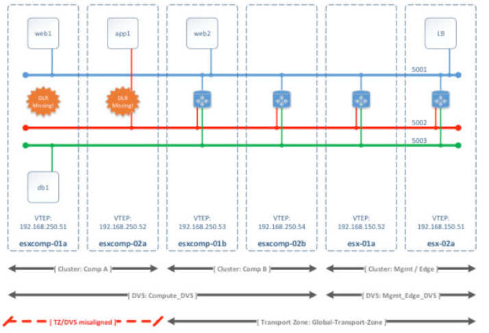 Here’s the example from the NSX Installation guide on what a properly aligned and misaligned transport zone looks like: