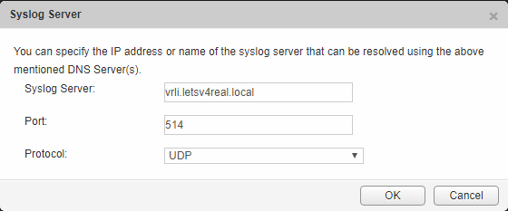 Enter in the information for your Syslog server and click OK.