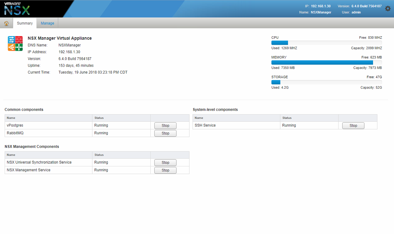 Log into the NSX Manager and click Summary